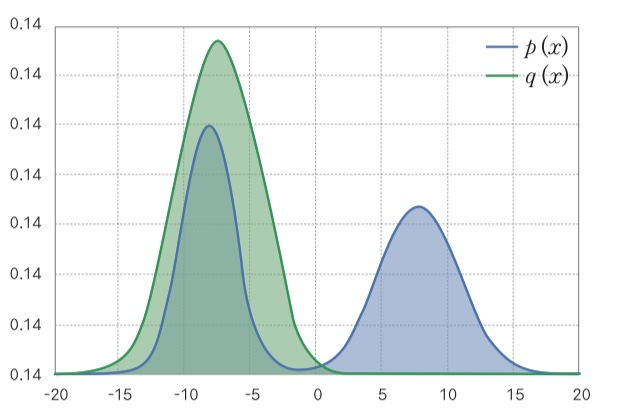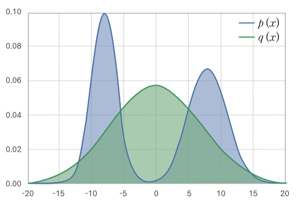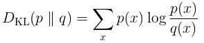 : 두 확률분포(q,p)의 차이, 유사하지 않은 정도(q로 p 추정)를 나타내는 지표